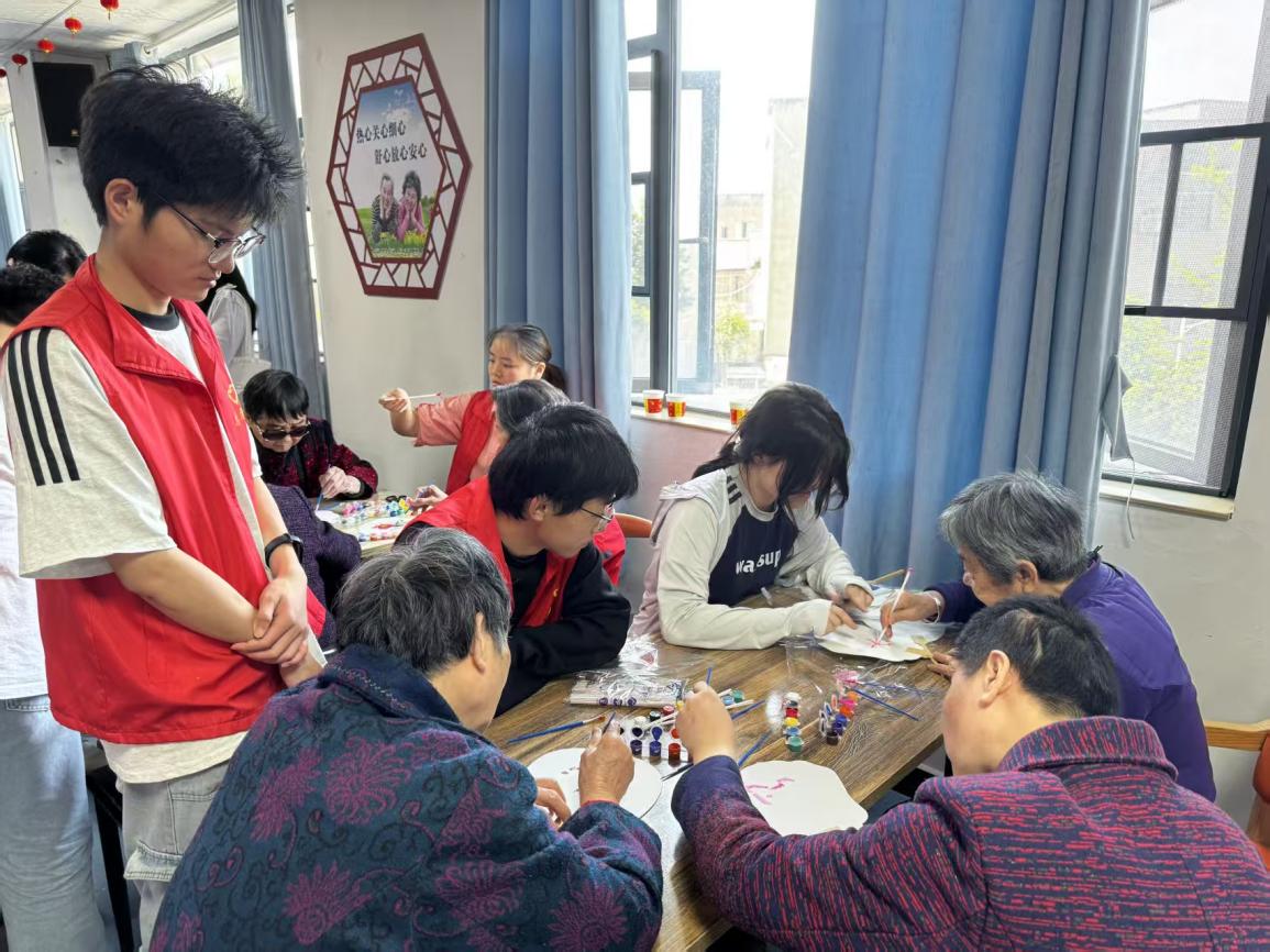 活动现场氛围温馨融洽。志愿者们贴心搀扶老人落座,带来朗诵、歌曲等多项文艺节目,精彩的表演舒缓治愈,丰富了老人们的闲暇时光,现场暖意融融。文艺表演结束后,志愿者分发手工材料,一对一指导老人进行团扇绘画创作。大家携手协作、闲谈互动,在趣味手工创作中拉近彼此距离,用真诚陪伴传递暖心善意。